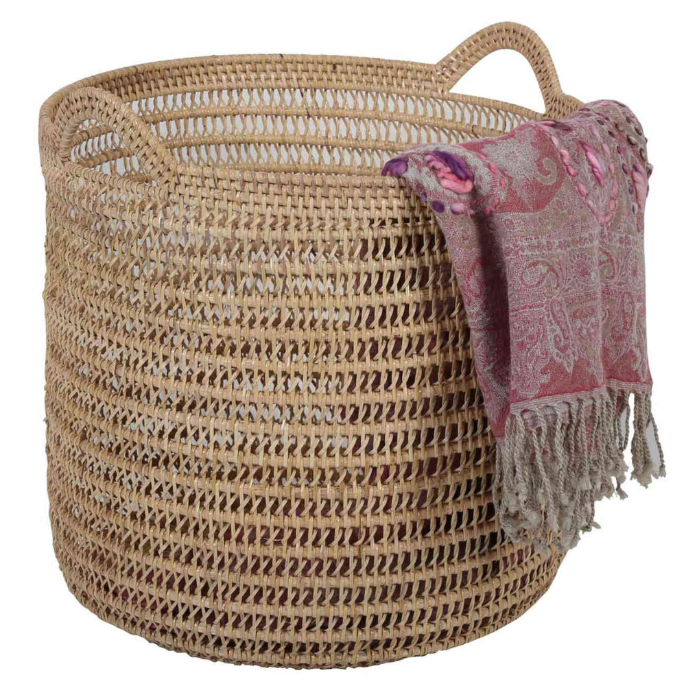- Maße Rattan Korb Eda M: Durchmesser ca. 28 cm x Höhe ca. 25 cm | Höhe mit Henkel ca. 28 cm