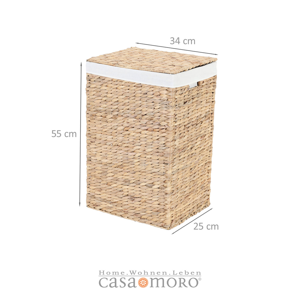 Der handgeflochtene Wäschekorb und Wäschesammler aus natürlichem Seegras vereint Funktionalität mit einem ansprechenden, skandinavischen Design. Jedes Stück ist ein Unikat, das in liebevoller Handarbeit aus natürlichem Seegras (Wasserhyazinthe) geflochten wird. Die warmen Naturtöne verleihen Deinem Zuhause eine beruhigende, einladende Atmosphäre, und der praktische Deckel sorgt dafür, dass die Wäsche stets ordentlich verstaut ist. Perfekt für das Bad, Schlafzimmer oder jeden Raum, in dem Ordnung und Stil gefragt sind.