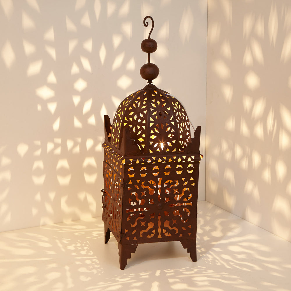 "Marokkanische Eisenlaternen dieser Art haben einen einzigartigen Licht- und Schattenwurf. Durch ihre Minarett-Struktur und die unzähligen Ausschnitte bricht sich das Licht in viele kleine Punkte und zaubert so eine traumhafte Atmosphäre."