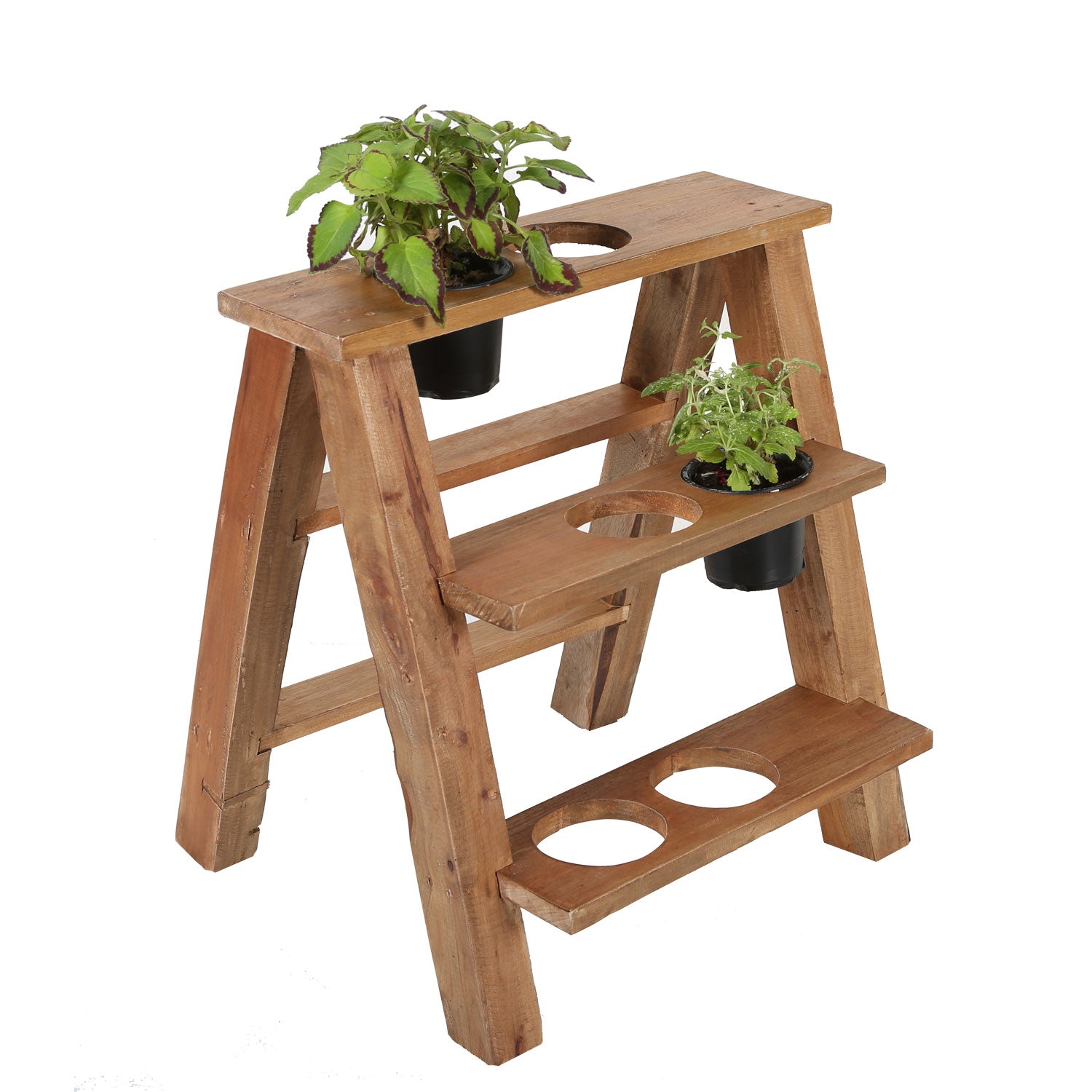 Setzen Sie Ihre Pflanzen im In- oder Outdoor Bereich gekonnt in Szene! Das stabile und rustikale Blumenregal ist ideal für Ihren Garten – und dank ihres platzsparenden Raumes ebenso gut für Balkon, Wohnzimmer oder Wintergarten. Die Blumentreppe bietet, mit insgesamt 3 Ablagen mit je 2 Löchern, ausreichend Platz für Ihre Blumentöpfe und Übertöpfe. Die Stufen ermöglichen es Pflanzen, Kräuter und Blumen stilvoll und sicher zu präsentieren. Wenn die Pflanzentreppe nicht mehr benötigt wird, können Sie diese platzsparend zusammenklappen. Die Pflanzenleiter muss nicht aufgebaut werden, da diese bereits montiert geliefert wird.