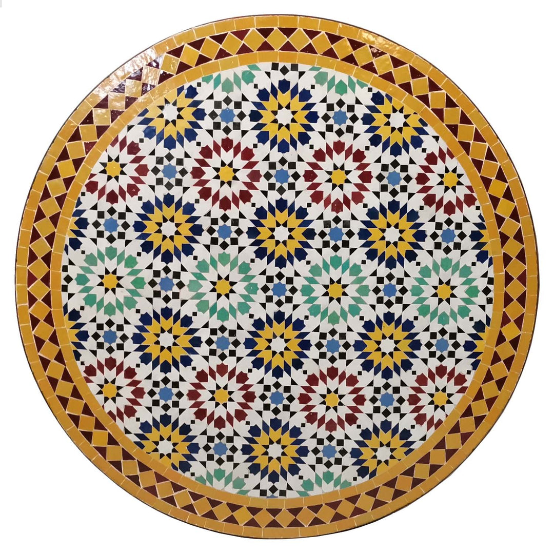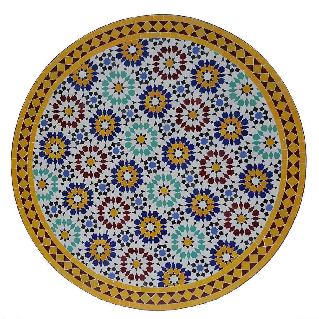 Die Kunst des Mosaiksetzens, bekannt als Zellige, ist eine jahrhundertealte Tradition und ein Symbol marokkanischer Handwerkskunst. Diese Technik prägte nicht nur Marokko, sondern auch die Architektur und Kultur von Al-Andalus, dem mittelalterlichen islamischen Spanien, und ist Ausdruck der engen kulturellen und künstlerischen Verbindungen zwischen diesen Regionen. Zellige-Mosaike, bestehend aus handgeschnittenen, geometrischen Keramikfliesen, schmückten Paläste, Moscheen und Gärten. Die Technik wird seit Generationen weitergegeben und ziert bis heute Wände, Böden, Mosaiktische und Mosaikbrunnen. 2016 wurde Zellige von Marokko bei der Weltorganisation für geistiges Eigentum (WIPO) registriert, um die kulturelle Bedeutung zu schützen. Farben und Formen tragen oft tief symbolische Bedeutungen.