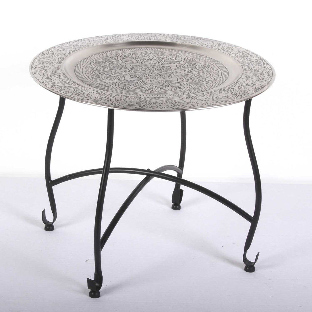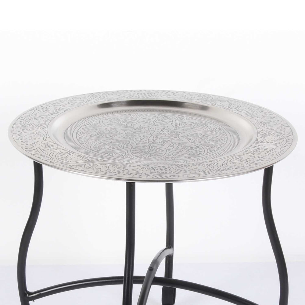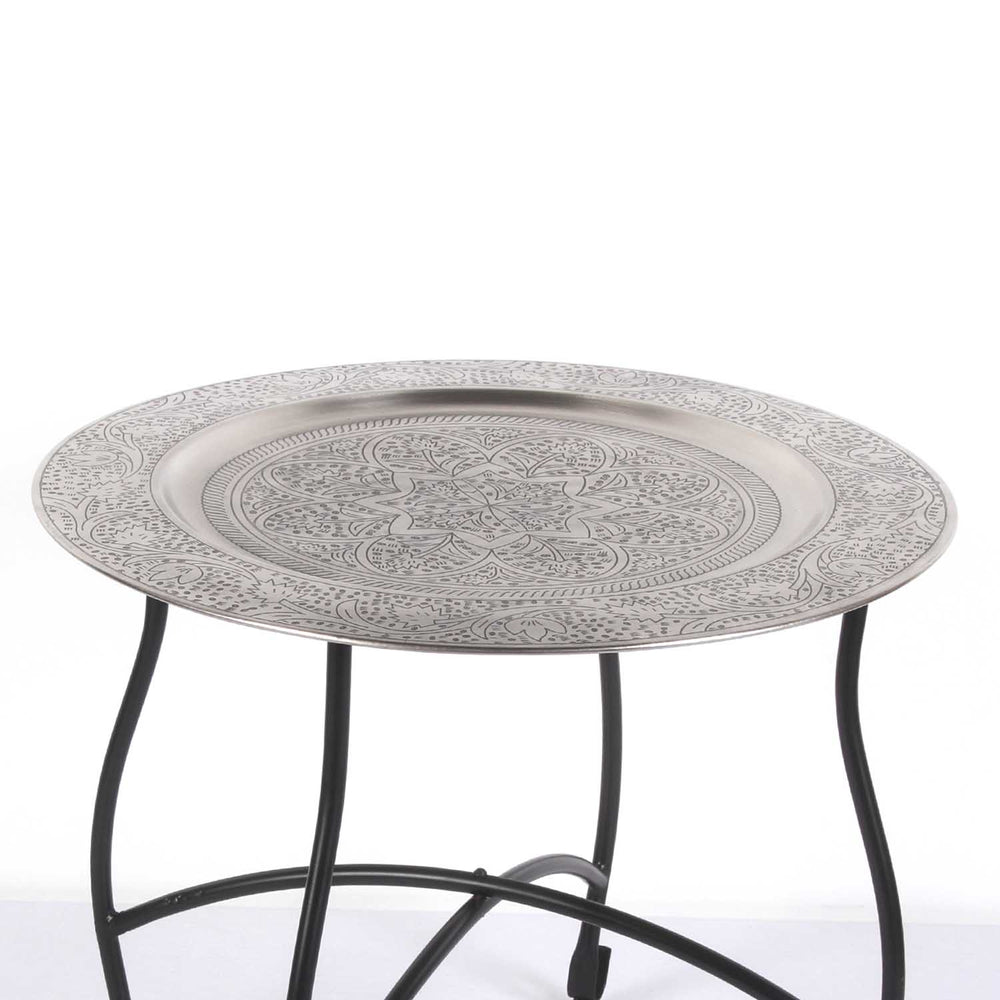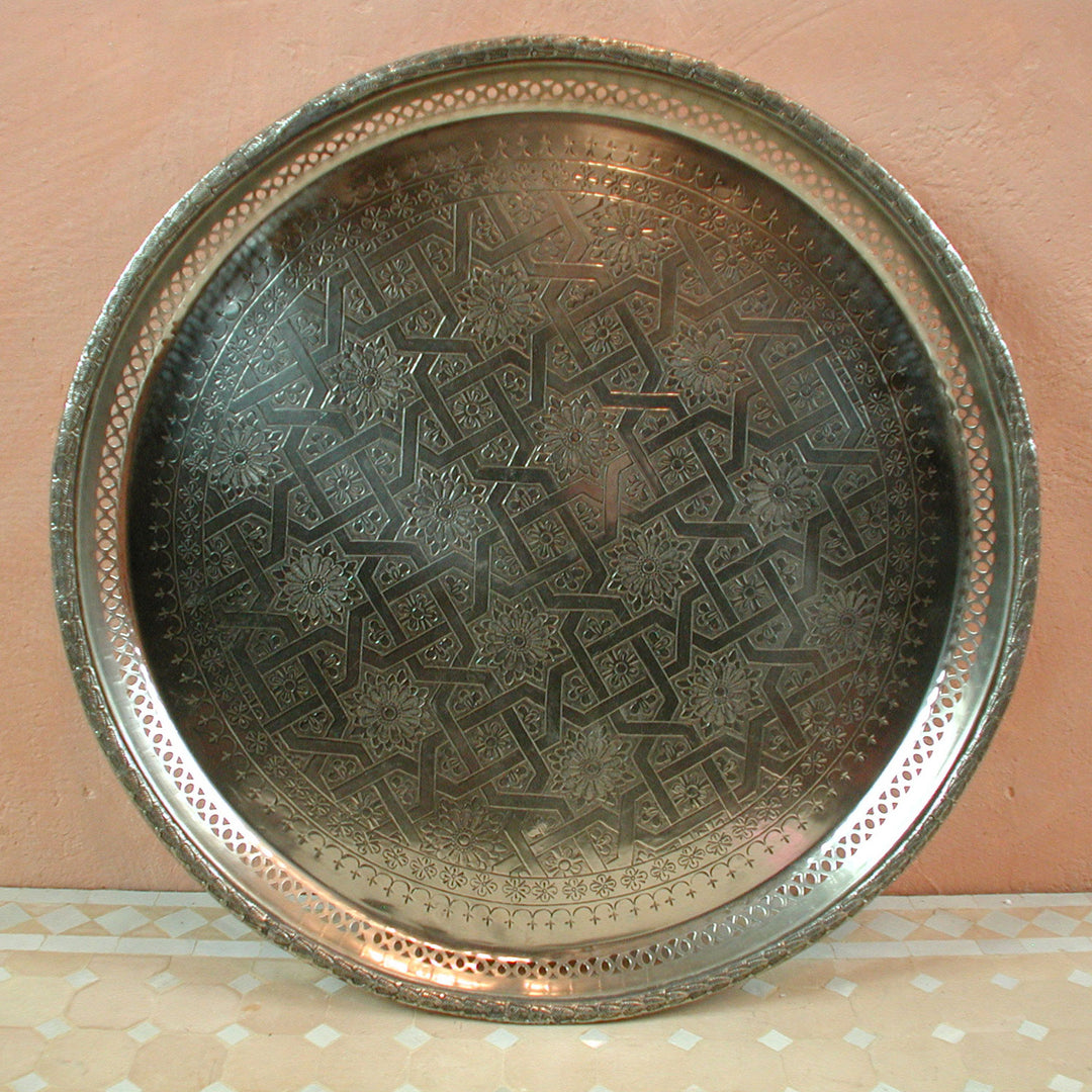 Traditionell aus Messing oder Aluminium gefertigt, bilden sie zusammen mit einem handgeschmiedeten Gestell den klassischen marokkanischen Teetisch. Hier finden Teekanne, Gläser, Minzbehälter und Zucker stilvoll Platz – funktional und gleichzeitig ein ästhetischer Mittelpunkt im Raum.