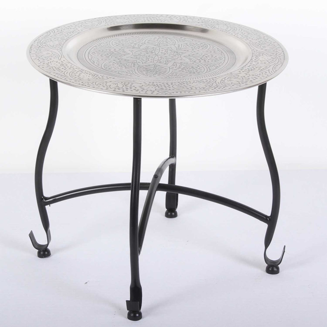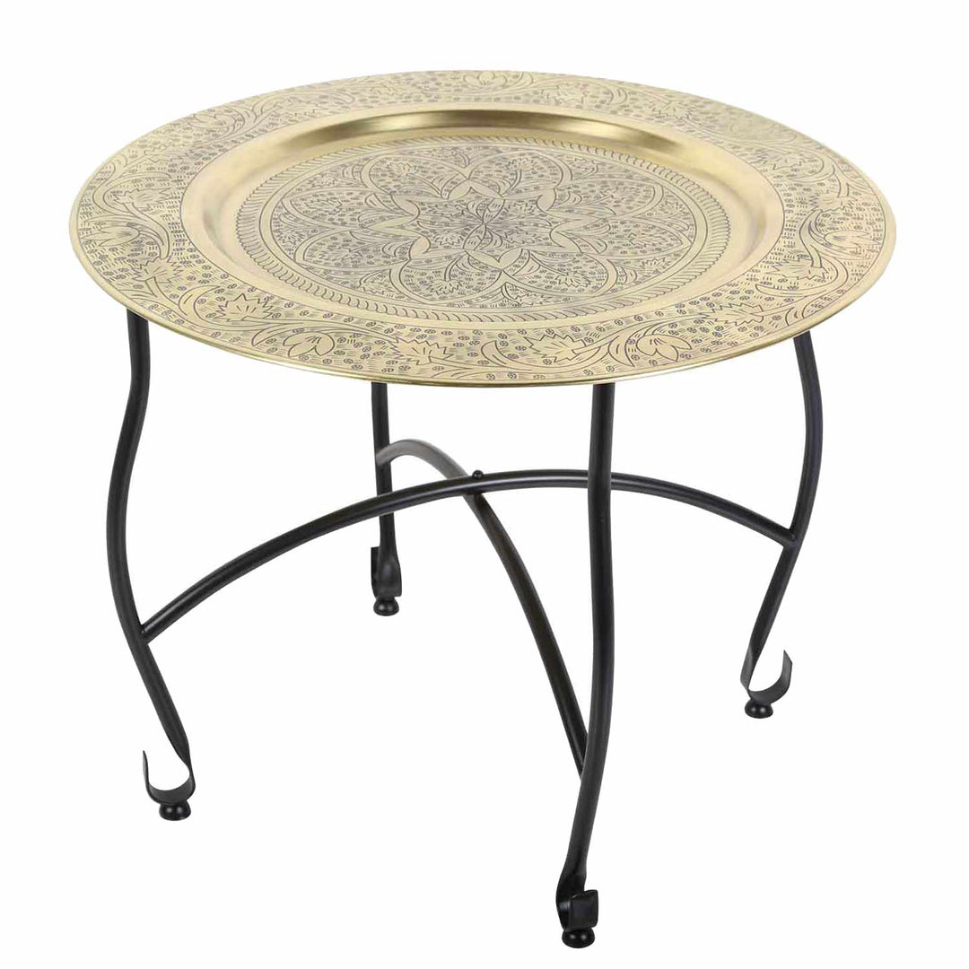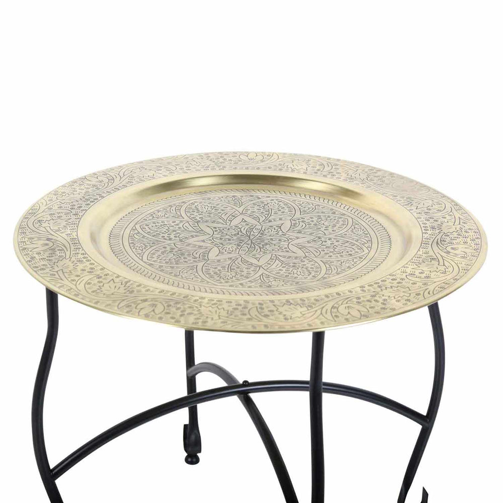 Traditionell aus Messing oder Aluminium gefertigt, bilden sie zusammen mit einem handgeschmiedeten Gestell den klassischen marokkanischen Teetisch. Hier finden Teekanne, Gläser, Minzbehälter und Zucker stilvoll Platz – funktional und gleichzeitig ein ästhetischer Mittelpunkt im Raum.