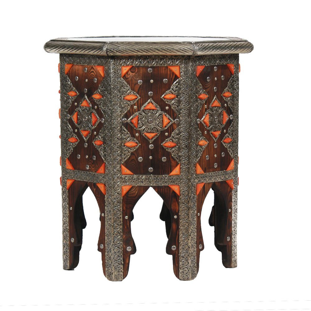 Dieser handgefertigte Beistelltisch besteht aus massivem Holz. Sein atemberaubender Stil und die orientalischen Formen sprechen für sich. Darüber hinaus schaffen die feinen Metallelemente ein einzigartiges und romantisches Erscheinungsbild. Er ist unverzichtbar, in einem orientalisch eingerichteten Wohnzimmer.