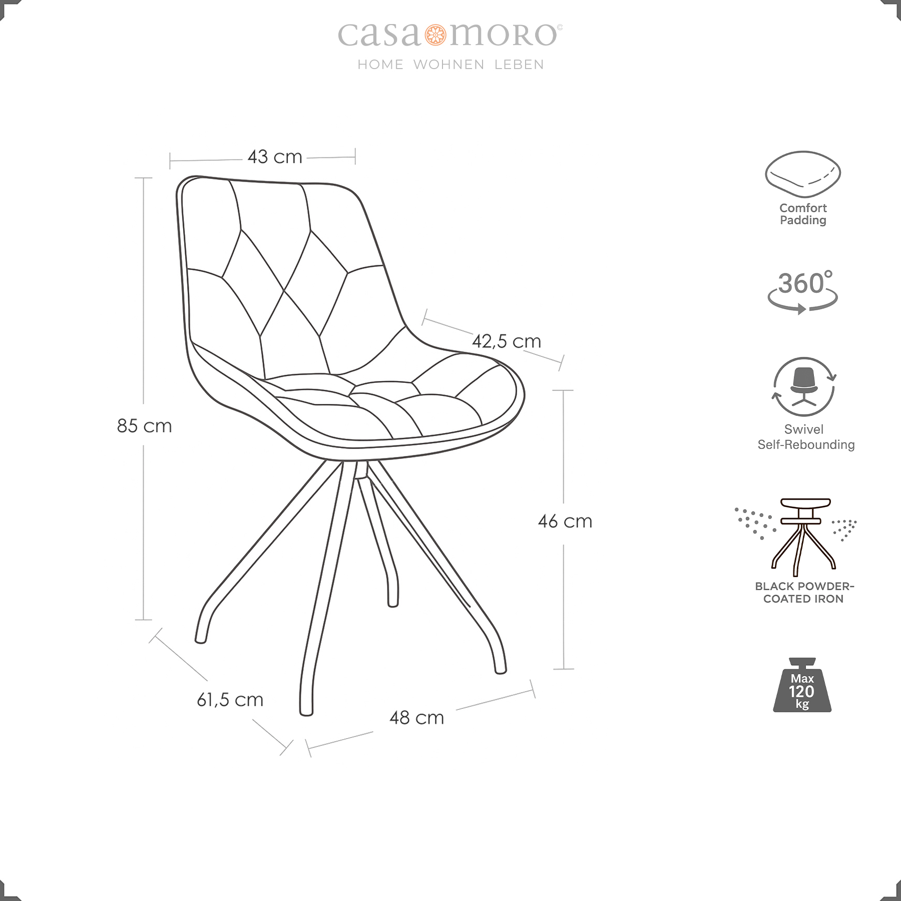 In warmem Braun und mit klaren Linien fügt sich dieser 360° drehbare Polsterstuhl harmonisch in Dein Zuhause ein. Die Auto-Return-Funktion dreht den Sitz nach dem Aufstehen sanft in seine Ausgangsposition zurück – ein feines Detail, das den Alltag erleichtert und für eine aufgeräumte Optik sorgt. So wird aus einem praktischen Stuhl ein Möbelstück, das Stil und Komfort verbindet.