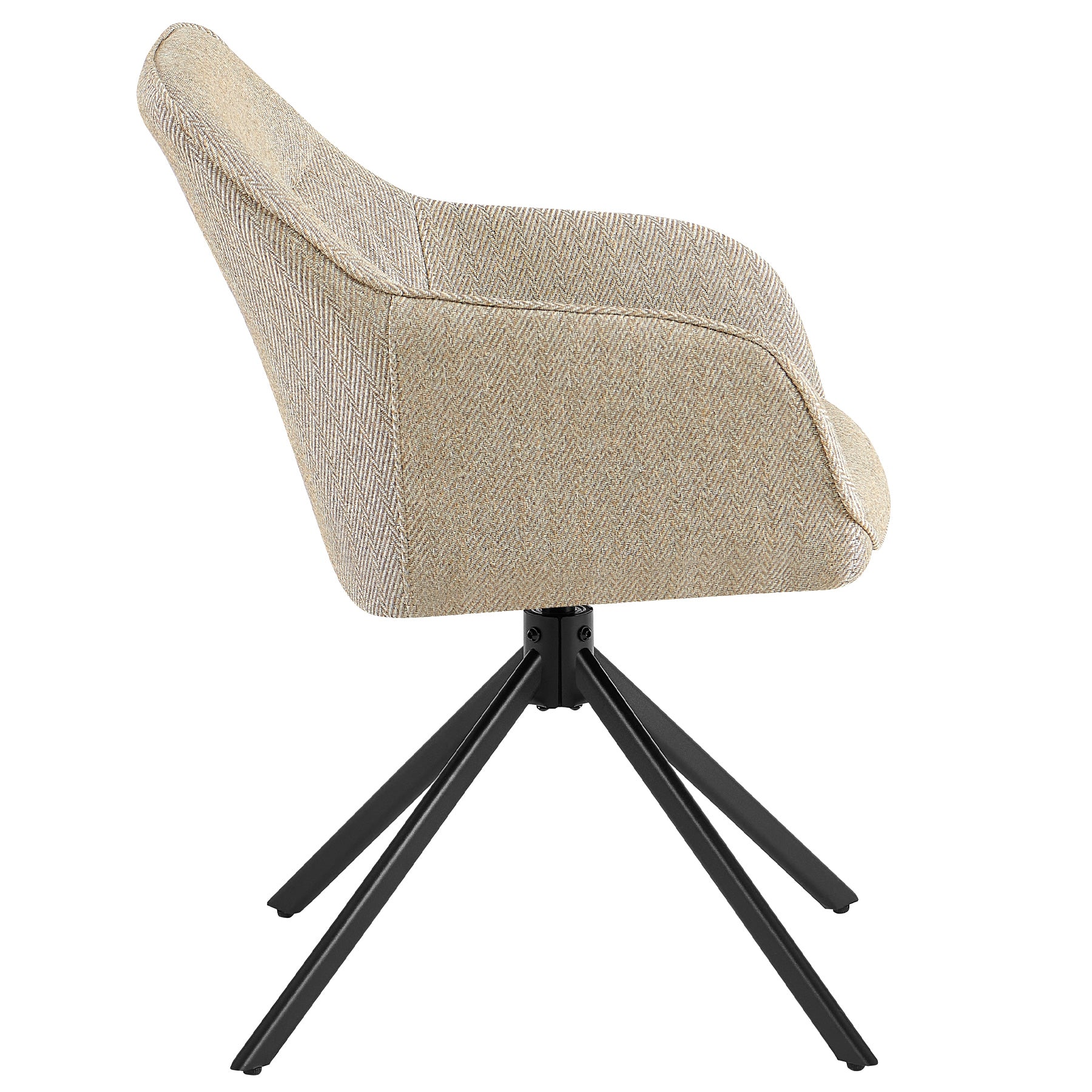 Dieser Polsterstuhl mit Armlehnen verbindet elegantes Design mit alltagstauglichem Komfort. Als 360° drehbar konzipierter Drehstuhl mit Metallgestell und Rückenlehne für Wohnzimmer, Esszimmer, Küche oder Büro passt er mühelos in moderne wie klassische Interieurs. Die Farbkombination Beige Schwarz wirkt zeitlos, ruhig und zugleich markant.